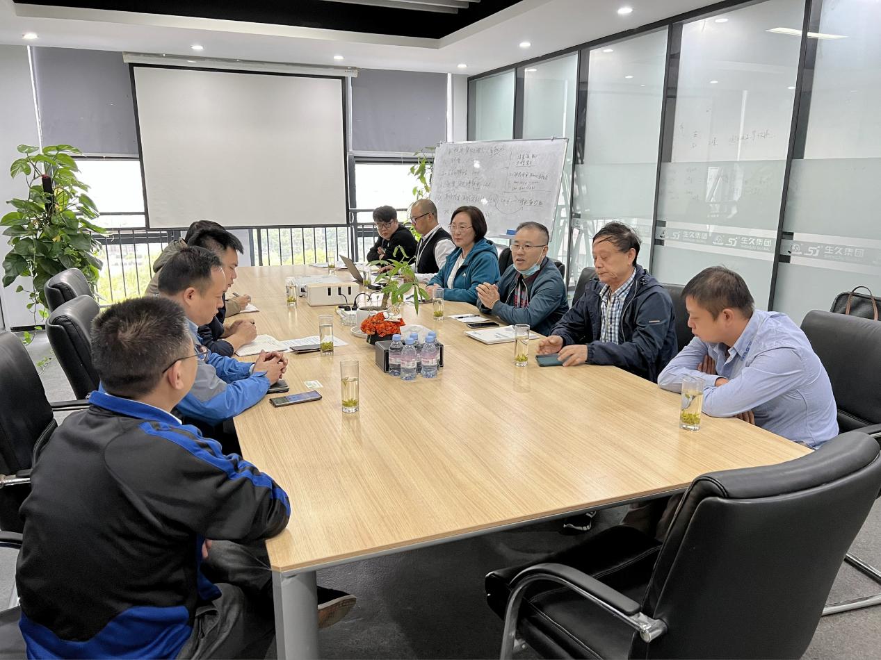 在会议室,市生态环境余姚分局王国雯科长介绍生久集团秉持着百年生久、创世界品牌的发展理念,生久集团生产的产品品类繁多,为了符合国家环保的要求,推动“双碳”目标进展,在产品的表面处理上致力于往绿色涂料发展,但是目前还有待在技术上的突破,希望通过宁波市涂料与涂装行业协会的平台专家力量为企业提供智力和技术的支撑。