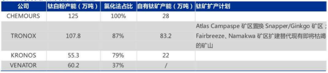 海外四大钛白粉生产企业