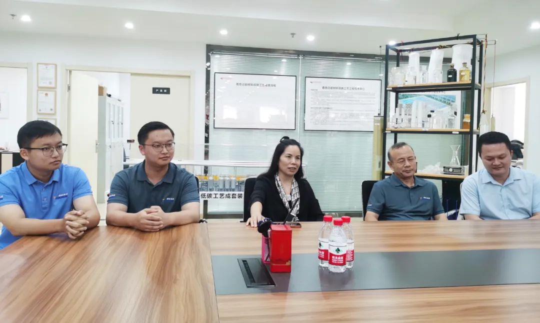 宁群英总裁对纳米中心的研究成果表示了肯定,并对颜钛公司的发展历史和主营产品进行了介绍。林奕兴部长分享了纳米钛白粉的众多应用场景与使用经验。