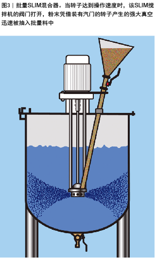 当需要很快将大批量的粉末加入到液体中时,或当难以分散的固体需要很长时间才能完全加入时,就需要考虑带有可在液面下加入粉末的内置装置的高剪切搅拌机。基于喷射器的粉末注入系统,尽管能有效地去除漂浮的固体,在搅拌混合过程中能提供更精准的控制,但确实经常受到堵塞和密集的设备维护问题的影响。此外,这些系统需要有经验的操作者来处理经常遇到的困难任务,即串联的三个独立装置的性能平衡:喷射器、泵和搅拌器。具有粉末注入整体构造的高剪切搅拌机更可靠和更容易操作。